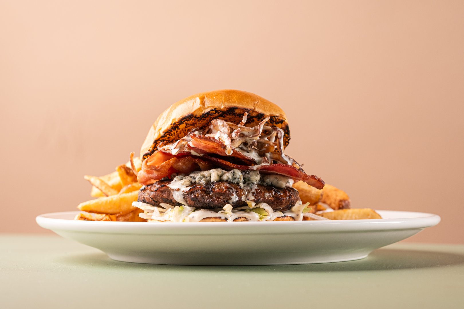 yu ranch grass-fed beef + pork patty, roasted mushroom medley, gun’s hill brie, crispy onions, arugula, toasted bun, fries